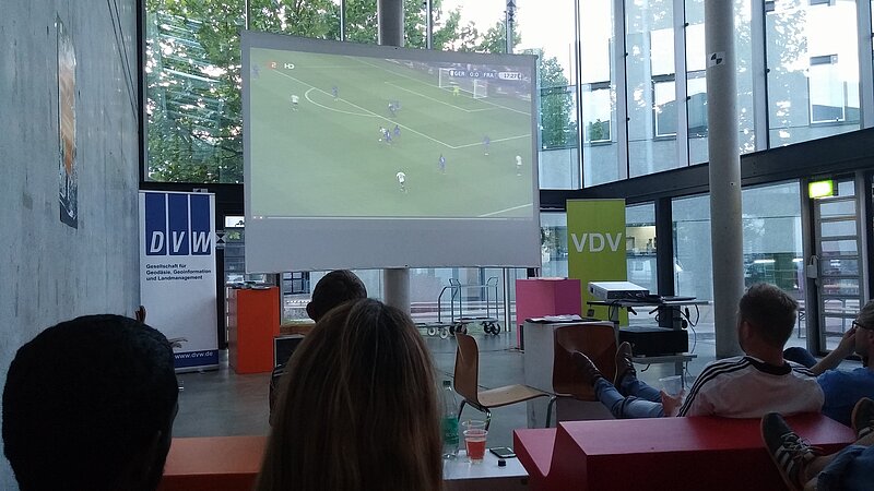 Pünktlich zum Ende der Kolloquiumsreihe an der Hochschule Anhalt in Dessau findet das traditionelle Grillfest statt. So auch dieses Mal am 07.07.2016. Nach dem Kolloquium zum Thema: „Vorstellung von geometrischen Zusammenhängen in geodätischen Netzen mittels Laser Tracker, Laser Tracer und anderen Messmethodiken ohne gegenseitige Beobachtung“ von Dipl.-Ing. (FH) Torsten Miertsch vom GSI Helmholtzzentrum für Schwerionenforschung GmbH, Darmstadt. Fand man sich von dem Hörsaalgebäude zum gemütlichen Beisammensein ein. Als besonderes Highlight wurde auf der Großleinwand im Foyer das EM-Halbfinale Deutschland – Frankreich übertragen und natürlich auch begeistert verfolgt. Die an der Hochschule in Dessau vertretenden Berufsverbände DVW und VDV fördern die Veranstaltung mit einem kleinen finanziellen Beitrag.