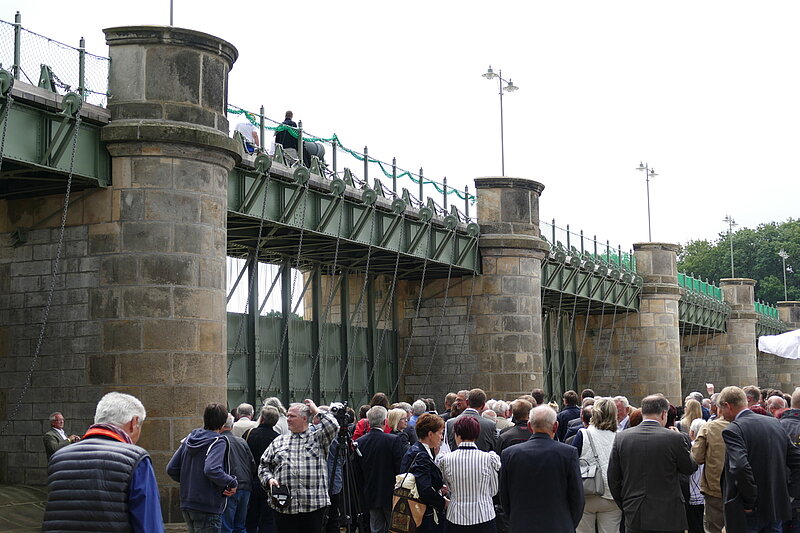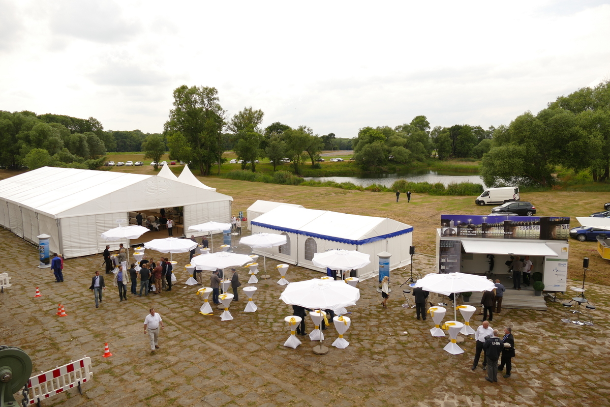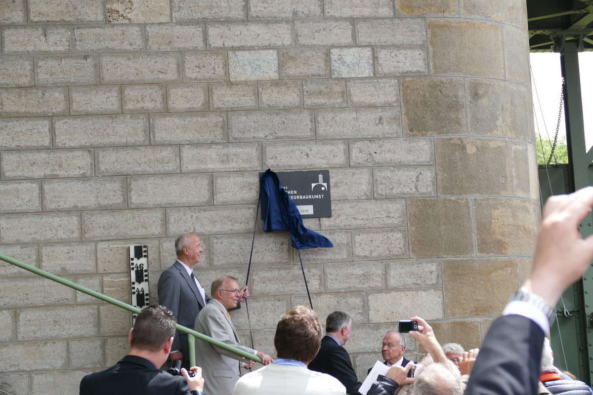 Das Pretziener Wehr in der Nähe des kleinen Ortes Pretzien nordöstlich von Schönebeck war am 18.06.2015 der Veranstaltungsort des Tages der Ingenieure in Sachsen - Anhalt. Das in der Region sehr bekannte Bauwerk erhielt von der Bundesingenieurkammer die Ehrung als "Historisches Wahrzeichen der Ingenieurbaukunst in Deutschland" verliehen. Damit reiht sich das Wehr in eine Folge berühmter Bauwerke in ganz Deutschland ein. Diese Auszeichnung, die auch mit der Veröffentlichung einer Publikation innerhalb der gleichnamigen Schriftenreihe verbunden ist, verleiht die Bundesingenieurkammer bereits seit 2007 an herausragende Leistungen vergangener Ingenieur-Generationen. Das Pretziener Wehr ist die erste ingenieurtechnische Meisterleistung in Sachsen-Anhalt, die diese bundesweit beachtete Ehrung erfährt. Das Bauwerk wurde 1871-75 errichtet und in seiner Geschichte im Schnitt etwa alle 2 Jahre ‚gezogen‘. Das ‚Ziehen‘ des Pretziener Wehrs öffnet bei Elbehochwasser den Umflutkanal und entlastet Magdeburg und die nähere Umgebung. Im Festakt sprachen der Präsident der Bundesingenieurkammer Herr Dipl.-Ing. Hans-Ullrich Kammeyer und der Präsident der Ingenieurkammer Sachsen-Anhalt Dipl.-Ing. Jörg Hermann sowie weitere Ehrengäste. Etwa 300 Gäste waren im eigens für diesen Anlass errichteten Festzelt versammelt. Ebenso wurde eine kleine begleitende Fachausstellung etabliert an der auch unser VDV-Landesverband beteiligt war. Der erste Teil der Veranstaltung endete mit der feierlichen Enthüllung der Ehrentafel am Bauwerk selbst. Nach dem offiziellen Festakt folgten ein Empfang und anschließend das Schauziehen und die Besichtigung des Pretziener Wehrs. Am Nachmittag veranstaltete der VDI Landesverband Sachsen-Anhalt gemeinsam mit der Ingenieurkammer Sachsen-Anhalt und dem Landesbetrieb für Hochwasserschutz und Wasserwirtschaft Sachsen-Anhalt das VDI-Forum 2015: Wissenschaft und Wirtschaft "Ingenieurdienstleistungen für Hochwasserschutz und Vernässung".