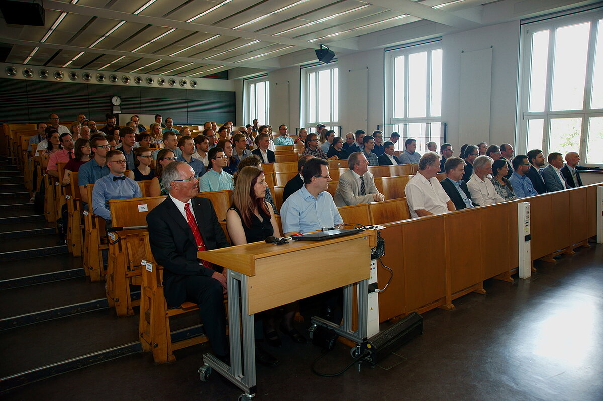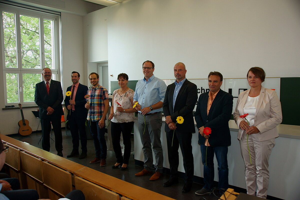 Am 21.06.2019 fand die traditionelle Verabschiedung der Absolventinnen und Absolventen der beiden Bachelorstudiengänge, des Fernstudiengangs Vermessungswesen und der beiden Masterstudiengänge, die seit dem Sommer 2018 ihr Studium erfolgreich abgeschlossen haben, statt. Auf der Veranstaltung konnten wiederum Auszeichnungen für hervorragende Studienergebnisse vorgenommen werden. Die Auszeichnung der Jahrgangsbesten wird auf der feierlichen Immatrikulation der Studienanfänger am 1. Oktober 2019 erfolgen. Weitere sehr gute Studienergebnisse konnten mit verschiedenen Preisen gewürdigt werden. Diese wurden durch die Fa. Trimble GeoSpatial, die Fa. epeg Energieplanung, Brandis, die DGfK, Sektion Dresden, die Fa. GDM GeoService, Weinböhla sowie durch den DVW (Harbert Buchpreis), gestiftet. In seiner Ansprache präsentierte der Dekan u. a. eine kurze Statistik zur Entwicklung der Studierendenzahlen. In seiner sehr gekonnt vorgetragenen Ansprache zog einer der ausgezeichneten Absolventen dann ein Resümee des Studiums, sein Beitrag basierte auf Goethes Erlkönig. Die musikalische Umrahmung gestaltete ein Student der Fakultät aus dem 2. Semester. Am Ende der Veranstaltung stellten dann noch zwei Fakultätsangehörige ihr künstlerisches Talent mit einer gekonnt gestalteten musikalischen Überraschung unter Beweis!