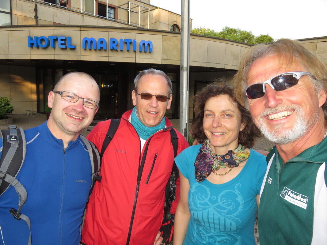 Was liegt näher, als im behutsamen Umgang mit der für uns endlichen Ressource Zeit vieles miteinander zu verbinden. Ein traditionelles Beispiel ist die Anreise zum Tagungsort der VDV Bundes-Mitgliederversammlung und –Fachtagung mit dem Fahrrad. Das kann man dann auch noch in einer Gruppe organisieren, wie das viele Beispiele der Vergangenheit zeigten. So trafen sich Langstrecken-Fahrradfahrer sternförmig anreisend aus Berlin (Berlin-Brandenburg), Gotha (Freistaat Thüringen) und Dresden (Freistaat Sachsen), um gemeinsam zum Begrüßungsabend der BMV 2015 in Fulda / Hessen pünktlich am 11.06.2015 im Tagungshotel einzutreffen. 563,66 Kilometer von der Dresdner Haustür bis zum Hotel Maritim im Schlosspark von Fulda zeigte der Fahrradtachometer. Weder die ehemalige innerdeutsche Grenze noch Tunnel konnten uns bei dieser so erlebnisreichen Radtour aufhalten.