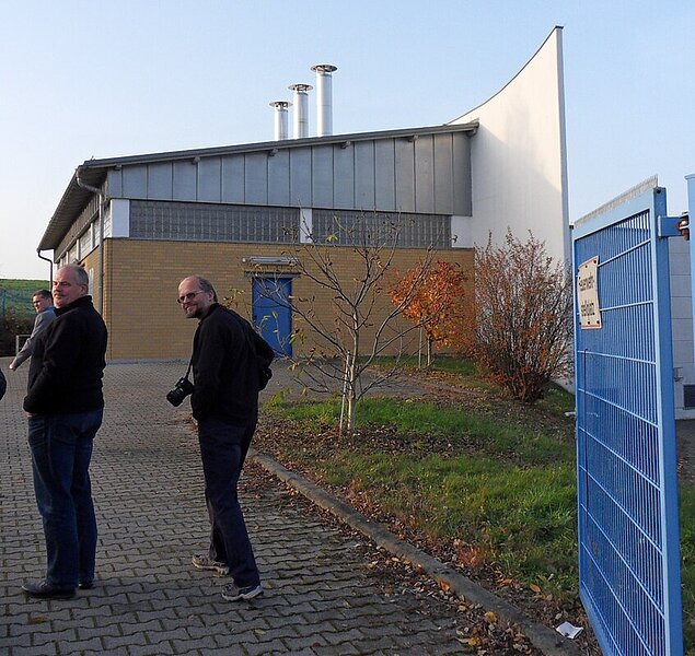 Herr Schröer als Betriebsingenieur bei eins energie erklärte uns sehr detailliert und kurzweilig die Funktionsweise der Gasdruckregel- und Meßanlage Chemnitz-West, die sich im Chemnitzer Ortsteil Rabenstein etwas abgelegen von der Wohnbebauung am Rand eines Feldes befindet. Schon mit der Architektur des Betriebsgebäudes wurde versucht, von den typischen zweckmäßigen Formen eines Funktionsgebäudes abzuweichen - es wurde in der Form eines Schiffes gebaut.