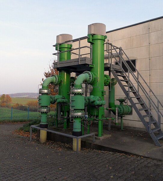 Entscheidend ist natürlich das Innenleben der Station. Die Anlage reduziert den hohen Druck von 80 bar des ankommenden Gases aus den Fernzuleitungen auf 25 bar und 4 bar. Mit diesem Druck wird das Gas dann in die Netze der Stadt Chemnitz weitergeleitet, wobei der Druck von 4 bar dann in die kleineren Verzweigungen des Stadtnetzes geleitet wird. Bis zum Endkunden wird der Druck dann auf wenige Millibar reduziert. In das Gebäude führen zwei Leitungen, von denen immer nur eine in Betrieb ist, die andere Leitung wird für Reparatur- und Wartungszwecke vorgehalten.