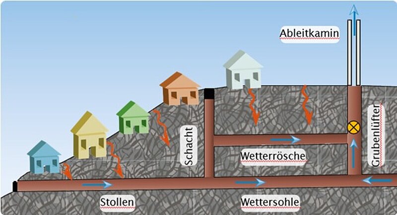 Der intensive Abbau der Lagerstätte Schneeberg/Neustädtel führt vor allem im Stadtkern von Schneeberg zu einer hohen Radonbelastung. Durch gezielte Bewetterung tagesnaher Grubenbaue soll diese Belastung nachhaltig reduziert werden