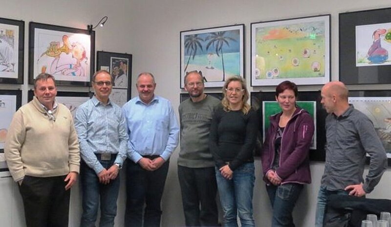Die Stimmung beim Treffen unseres Bezirks in den Räumen der WEIT Vermessung GmbH am Markt in Chemnitz war auch so weihnachtlich entspannt und gelöst. Es war sehr amüsant und unterhaltsam, die Zeichnungen des Chemnitzer Cartoonisten und Grafikers Rainer Bach, die seit Dezember 2013 in den Räumen der WEIT Vermessung GmbH zu entdecken sind, anzuschauen. Wahrscheinlich könnte man die Zeichnungen täglich betrachten, und würde immer wieder neue Details erkennen.
