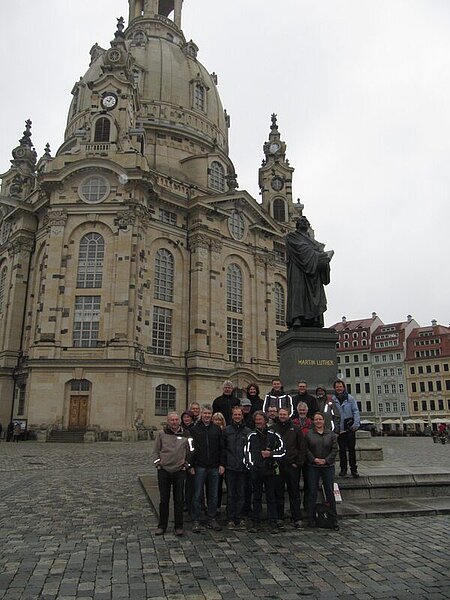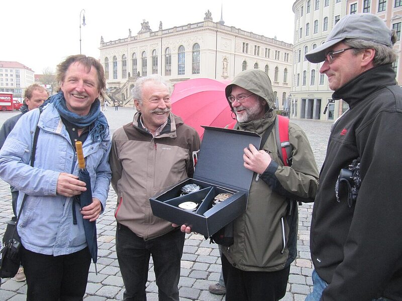 Vom Freitag, den 26.04.2013 zum Sonnabend, den 27.04.2013 besuchte der Landesverband Bayern im Rahmen einer 2 Tages Exkursion den Freistaat Sachsen und die Landeshauptstadt Dresden. Primeres Fachexkursionsziel war der Braunkohlen-Tagebau Welzow in Süd-Brandenburg, direkt an der sächsischen Grenze gelegen. Zuerst wurden umfangreiche theoretische Informationen in Form von fachspezifischen Vorträgen und Filmvorführungen geboten. Zur kulinarischen Stärkung konnte ein Mittagessen in der Betriebskantine eingenommen werden. Die bayerischen Kollegen mit ihrem Landesvorsitzenden Frank Pöhlmann und ihrem Ehrenvorsitzenden Helmut Wenninger hatten Verständnis für die lange Anreise des sächsischen Landesvorsitzenden Matthias Kaden. Denn vorher galt es dem sachsen-anhaltinischem Landesvorsitzenden Achim Dombert zur Hochzeit bei Magdeburg, in Biederitz zu gratulieren. Obwohl die lange und schnelle Fahrt nicht ganz ohne "Knöllchen" verlief, war dieser besondere Anlass und Höhepunkt auch eine derartige Erinnerung jederzeit wert. Bei dafür idealem trockenen und fast windstillem Wetter sorgten anschliessend unvergessliche Impressionen im Tagebaufeld für Staunen und Bewunderung. Angesichts der gigantischen Landschaftveränderungen auf Grund unseres Energiehungers schlichen sich schon Zweifel und Gewissensbisse in die Gemüter ein, dagegen wirkt der Bau der Waldschlösschenbrücke in Dresden eher wie ein unscheinbarer Zwerg. Beruhigend konnten aber die großzügigen Maßnahmen der Rekultivierung und Renaturierung der Tagebaurestlandschaften zur Kenntnis genommen werden. Es entstehen geradezu völlig neue lebensfreundliche Kulturlandschaften mit viel Wasserflächen, wiederentstandenem Grün und Biotopen sowie neuer Infrastruktur. Für die ökologische und nachhaltige Bewirtschaftung sind sie ebenso geeignet wie auch zum modernen Wohnen, aktiven Erholen und eindrucksvollem Erleben. Besonderer Dank sei an Herrn Hans-Jochen Kowar, Leiter Markscheiderischer Außendienst des Unternehmens Vattenfall Europe Mining AG, Betrieb Tagebaue für die ganztägigen hoch interessante und sehr informative Betreuung vor Ort, im Tagebau Welzow-Süd gerichtet. Der Abend gehörte dann der sächsischen Landeshauptstadt Dresden. Vom Hotel aus führte ein Abendspaziergang bis zum Restaurant "Italienisches Dörfchen". In Erinnerung an den feierlichen Abschluss der Bundesmitgliederversammlung und Fachtagung des VDV in Dresden am 16.05.2009 und bei netten Gesprächen genossen die bayerischen Kollegen nun bei einem herrlichen Blick über die Elbe unseren sächsischen Gerstensaft und konnten sich kulinarisch verwöhnen lassen. Die Nacht war sehr kurz, denn bereits 8:15 Uhr war am Hotel Start und 8:30 Uhr begann am Kronentor des Dresdner Zwingers die Stadtführung. Unser VDV Mitglied Frau Marion Schönfeld, jetzt professionelle Stadtführerin, ließ es sich nicht nehmen, selbst den Rundgang zu leiten. Wohl symbolisch für unseren Berufsstand begannen wir genau am nach 6-jähriger Bauzeit feierlich am 13.04.2013 unter VDV Beteiligung wiedereröffneten Mathematisch Physikalischen Salon. Es handelt sich hierbei um die älteste, größte und bedeutenste Sammlung dieser Art weltweit, in der unter anderem auch historische Messinstrument, thematische Globen und vieles mehr in würdiger Form zu bestaunen sind. Der weitere Rundgang führte durch den Zwinger über den Theaterplatz an der Semperoper und dem Taschenbergpalais vorbei zum Residenzschloss und der Katholischen Hofkirche. Weiter führte unser Weg über die Brühlsche Terrasse entlang dem Fürstenzug durch die historische Innenstadt zum Coselpalais. Hierbei fehlte nie der vermessungstechnische Bezug zu den wiederaufgebauten Denkmälern und historischen Leitbauten. Wo endete wohl unsere Stadtführung? Ja genau da, wo unser Bundesmitgliederversammlung am 15.05.2009, fast exakt vor 4 Jahren begann, an und in der Frauenkirche Dresden am Neumarkt. Herzlichen Dank unseren Gästen für ihren Besuch und ihr Interesse. Somit von Freistaat zu Freistaat beste Wünsche und viele Grüße bis zum nächsten Treffen und auch alle anderen Landesverbände sind sehr gern wieder bei uns gesehen und natürlich ebenso herzlich eingeladen. Deshalb bis bald, Ihr Matthias Kaden