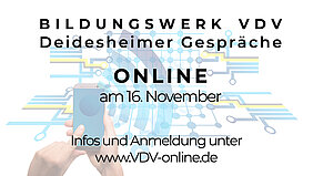 Am 16.11.2022 fand das Fortbildungsseminar BW-04122 „Deidesheimer Gespräche 2022“ als ONLINE-Variante des BILDUNGSWERK VDV statt.