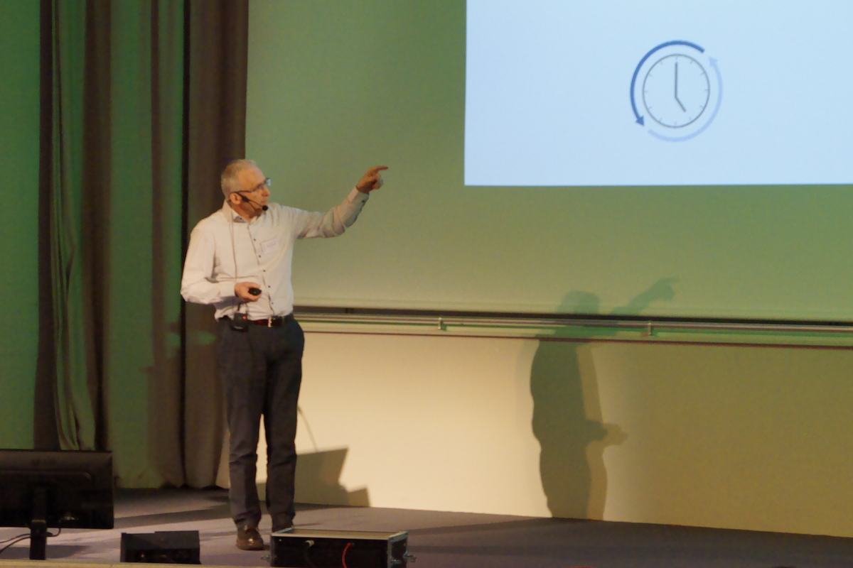 Neu in diesem Jahr war die Nutzung der slido-App für Fragen zu den Vorträgen und für das Feedback. Dadurch konnten Fragen bzw. Kommentare bereits während der Vorträge eingegeben werden. Matthias Meinck fasst diese zusammen und stellte die Fragen an den bzw. die Referenten. Dabei bewährte sich, dass jetzt 10 min. (statt 5 min.) für die Diskussion eingeplant waren.