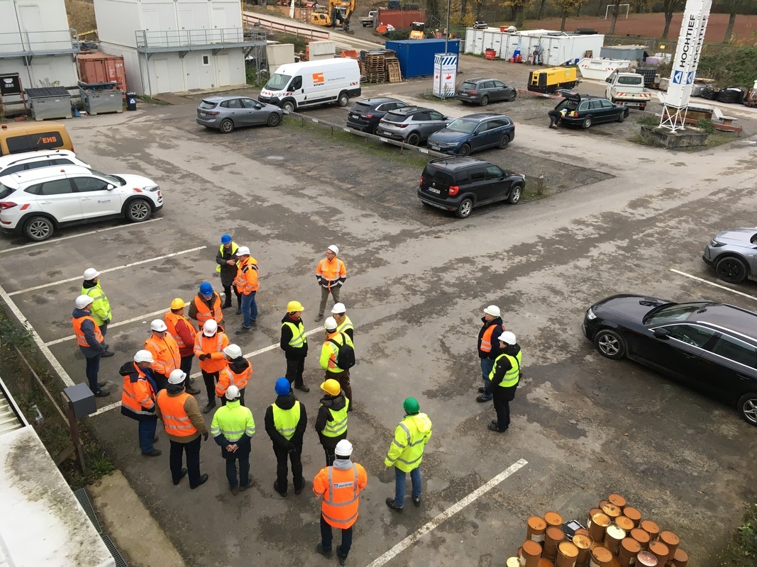 Für die Baustellenbegehung sollten die Teilnehmer - wenn möglich - eigene Sicherheitsschuhe, Helm und Warnweste mitbringen.