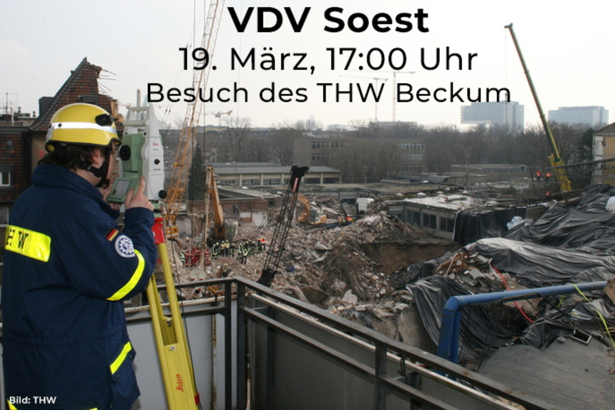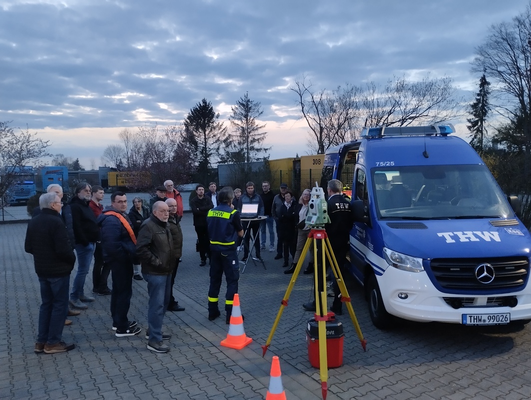 Wir alle kennen das Technische Hilfswerk, kurz: THW – jederzeit bereit, in Deutschland und weltweit zu helfen. Ein Teil dieser Hilfe ist der Trupp Einsatzstellen-Sicherungs-System (ESS). Ob Vermessung, automatisierte Überwachung labiler Objekte oder das Einmessen von Behelfsbauten wie Brücken, Übergängen oder Lagern, das ESS ist vielseitig einsetzbar. Genau dieses ESS ließ sich der VDV-Bezirk Soest jüngst in Beckum näher bringen.