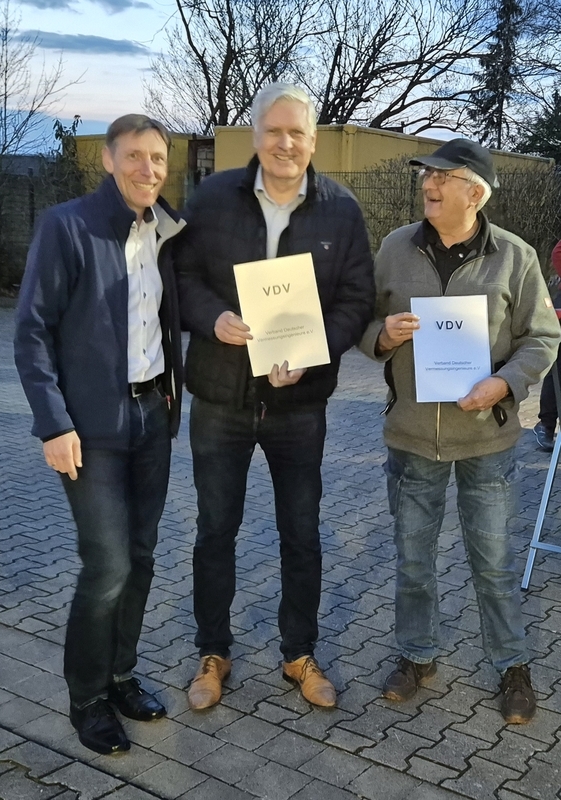 Im Anschluss an die Präsentation freuten sich die Kollegen Detlev Motzkus und Heinz-Werner Scheer über die Ehrung für 40-jährige Mitgliedschaft im VDV, bevor beim Ausklang im Restaurant Stiefel Jürgens die Aktivitäten des THW noch nachbesprochen wurden.