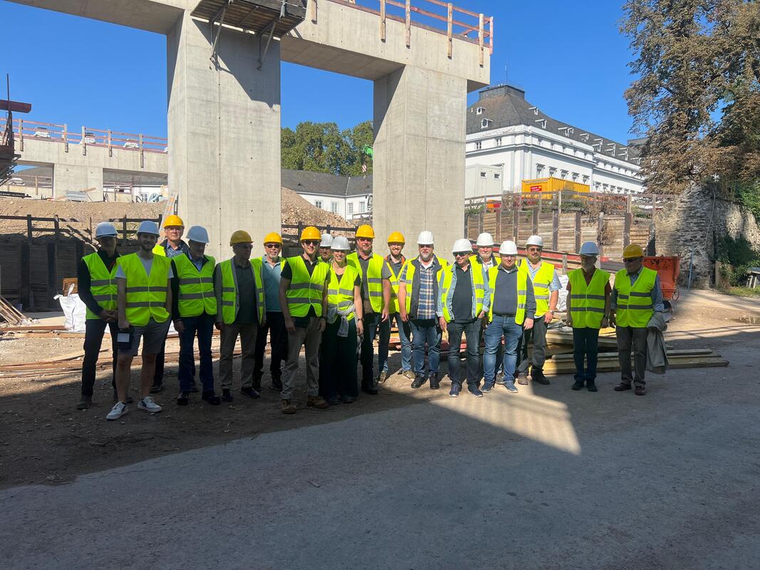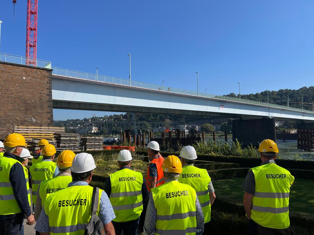Diese beeindruckende Brücke soll bis 2028 fertiggestellt werden und folgt einem innovativen dreistufigen Bauprozess. Zunächst wird eine neue Brücke direkt neben der bestehenden alten Brücke errichtet. Sobald diese steht, wird der Verkehr auf die neue Brücke umgeleitet und die alte Brücke abgerissen. Im Letzen Schritt wird unter 6 wöchiger Vollsperrung die neue Brücke an die Position der alten Brücke geschoben und alle Auffahrten neu angebunden. Während der Führung erhielten die Teilnehmenden faszinierende Einblicke in die technischen Herausforderungen und Lösungen, die bei einem solch umfangreichen Projekt notwendig sind. Der Vortrag über Verkehrsführung, Minimierung von Beeinträchtigungen für Anwohner und die künftige Bedeutung dieser Brücke für die Region war besonders interessant.