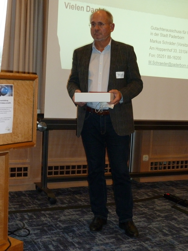 Nach der Mittagspause sorgte zunächst ein Dialog der Versammlungsleiterin mit Herr Dipl.-Ing. Martin Lietz für Abwechslung. Die beiden Mitglieder des Gutachterausschusses Wuppertal erläuterten in Ihren Rollen als Gutachterin und Architekt, welche Änderungen es 2018 in der Bauordnung NRW gab und wie sich diese bei der Verkehrswertermittlung auswirken können. Im Anschluss berichtete Herr Dipl.-Ing. Markus Schräder vom Gutachterausschuss Paderborn in einem weiteren Vortrag über ein von ihm geleitetes Projekt der Digitalisierungsoffensive der Landesregierung in NRW. Das Projekt ZE – Online ersetzt den bisher analogen Erhebungsbogen, den Immobilienkäufer:innen ausfüllen müssen, durch ein Eingabeportal im Internet. Damit soll zukünftig ein direkter Datenfluss des Anwenders in die Zentrale Kaufpreissammlung realisiert werden. Im letzten Vortrag des Tages erläuterte Herr Dipl.-Ing. Andreas Jardin, Sachverständiger und Bewertungsexperte der Oberfinanzdirektion Köln, welche Änderungen in der neuen ImmoWertVO für die Gutachterausschüsse und die Sachverständigen wichtig sind. So müssen z.B. künftig die vom Gutachterausschuss ermittelten Liegenschaftszinssätze auf einen Stichtag bezogen werden, die bei der jetzigen Marktdynamik durchaus eine Herausforderung darstellt.
