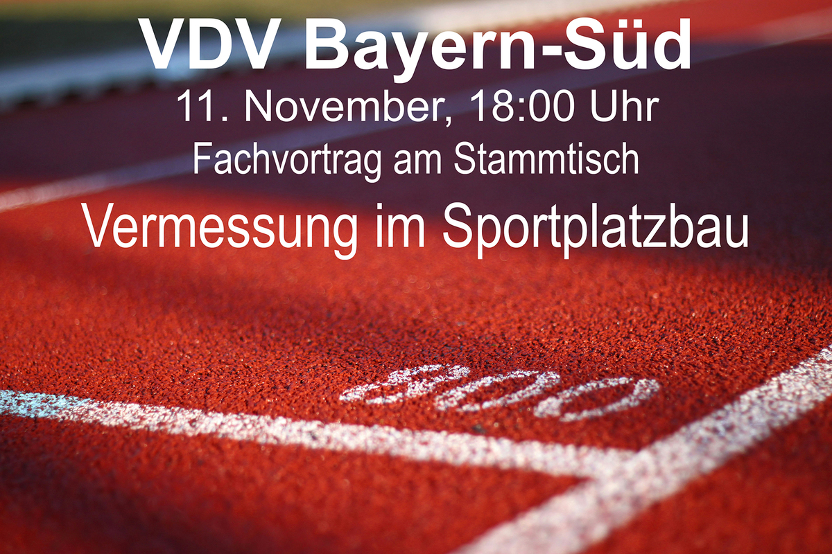 Am 11. November 2025, während anderswo die Jecken begannen durch die Straßen zu ziehen, traf sich der Bezirk Bayern-Süd beim Griechen in Feldkirchen zu einem gemeinsamen Stammtisch. Der Abend stand unter dem Thema „Vermessung im Sportplatzbau - Was muss an einem Sportplatz alles vermessen werden damit Weltrekorde gewertet werden!". Schon zu Beginn der Veranstaltung waren die Anwesenden begeistert von dem Thema und stellten viele Fragen, bevor Julia Lechner ihren Vortrag über die Arbeit bei der Firma Polytan überhaupt beginnen konnte. Polytan ist ein deutsches Unternehmen, das sich auf den Bau von Sportplätzen mit Kunstrasen und EPDM-Belägen (synthetischer Gummi, oft auch Tartanbahn genannt) spezialisiert hat. Schnell wurde klar: Sportplatz ist nicht gleich Sportplatz! Es gibt eine Vielzahl an verschiedenen Kunstrasenvarianten und mit den EPDM-Belägen können beliebige Farbkombinationen und sogar ganze Logos auf den Platz gebracht werden. Hierfür wird auch mal das Geschick der Vermesserin benötigt, um ausgefallene Muster abzustecken. Auch bei der Sicherstellung eines ebenen Platzes oder der Linierung der verschiedenen Sportarten ist die Vermessung gefragt. Die größte Herausforderung stellt aber die Realisierung der Rundlaufbahn dar. Nach festen Normen müssen hier Startpunkte und Positionen für Hürden markiert werden, damit darauf später einmal Weltrekorde gewertet werden können.