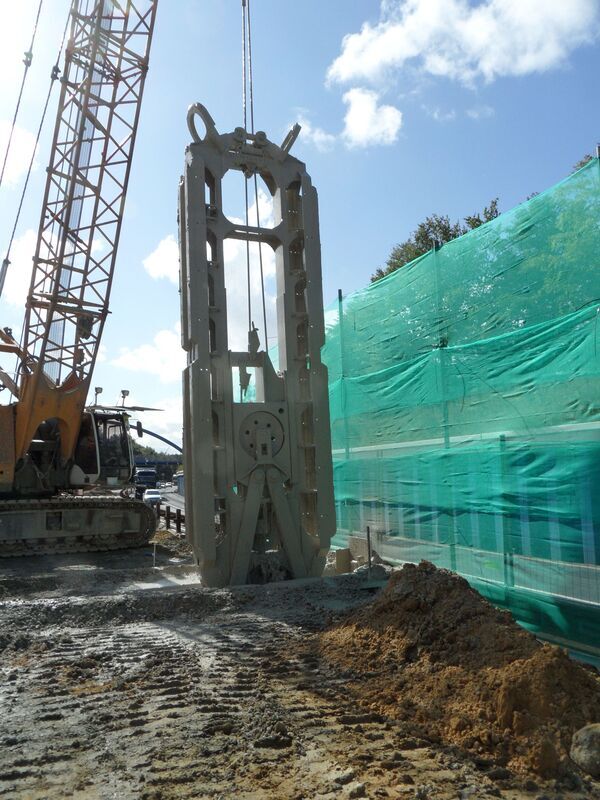 Ein kurzer Spaziergang über die neue Fußgängerbrücke führte uns mitten in diese doch sehr außergewöhnliche Baustelle. Hier konnten wir miterleben, wie die 25 Tonnen schwere Baggerschaufel des Schlitzwandbaggers an Seilen hängend ihre Arbeit verrichtete oder wie die Spannanker gesetz wurden. Zum Schluß der örtlichen Besichtigung hatten wir die Möglichkeit, den ersten fertigen Teil der Röhe zu besichtigen.