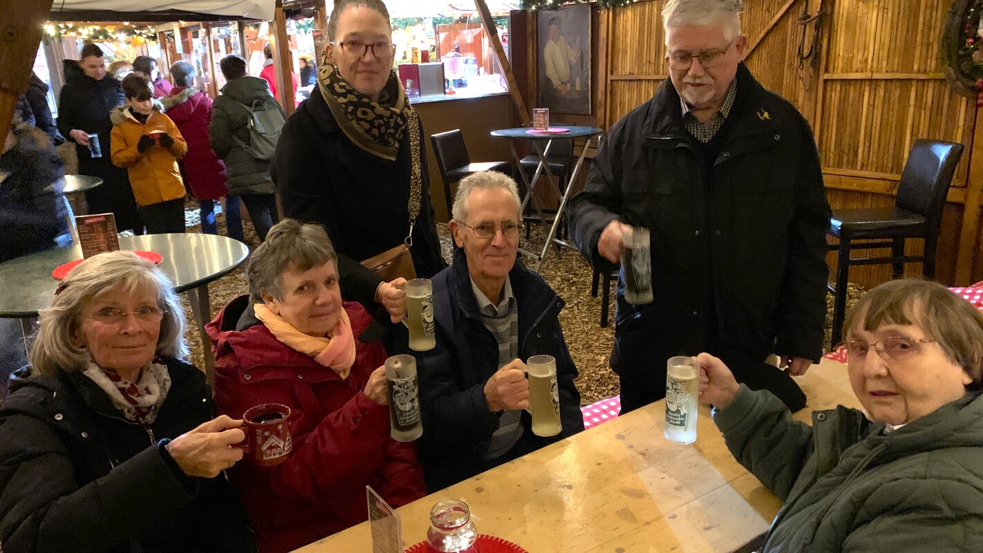 Da das Wetter wieder einmal etwas ungemütlich war, wurde für den Pflichttrunk zügig das Glühweinzelt angesteuert. Den kulinarischen Abschluss bot anschließend auf hohem Niveau die Marktschänke. Bei lebhaften Gesprächen und bester Stimmung verging die Zeit wie im Flug und man musste aufpassen, die unflexiblen Parkhaus-Schließzeiten nicht zu verpassen.