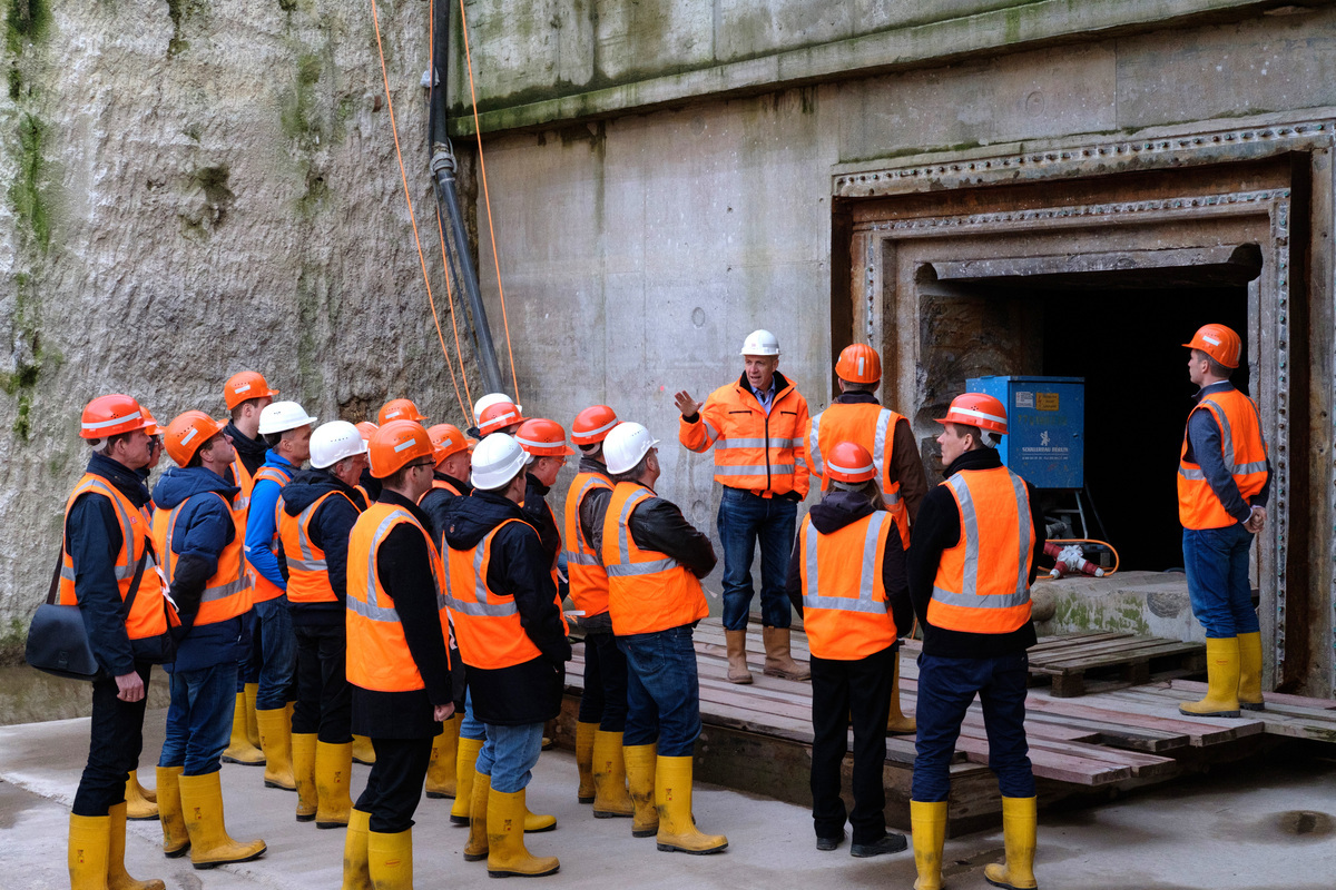 Eine Gruppe von Seminarteilnehmern hatte die Möglichkeit, die Baustelle „Neubau der U-Bahn-Linie U5“ vor Ort zu besichtigen. Herr Osterwald von der BVG Projekt GmbH und Herr Reetz-Graudenz (Oberbauleiter der ARGE) stellten im Logistikzentrum am Marx-Engels-Forum den aktuellen Stand des Projekts vor. Anschließend konnten die Teilnehmer die U5-InfoStation im U-Bahnhof Rotes Rathaus besichtigen. Es ging dann weiter zur Bahnsteigebene und noch eine Ebene tiefer zur Aufstellanlage. Dort war die Baustelle unmittelbar zu erleben. Die Bauarbeiten gehen allmählich dem Ende zu, derzeit laufen umfangreiche Arbeiten für die Vorbereitung der Inbetriebnahme. Das BILDUNGSWERK VDV hat es sehr geschätzt, dass trotz der angespannten Arbeitssituation einer Gruppe des Gleisbauseminars die Baustellenbesichtigung seitens der BVG Projekt GmbH ermöglicht wurde.