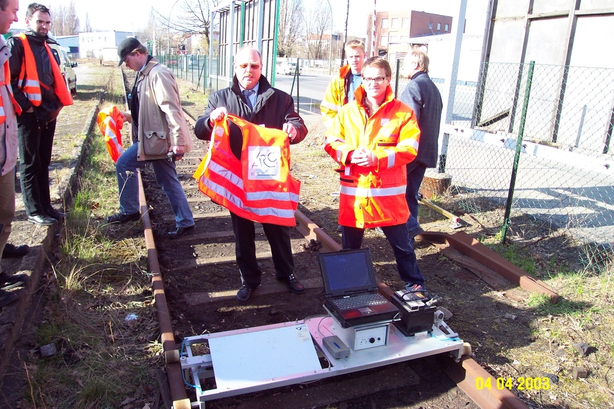 Durch den jahreszeitlichen Wechsel von September auf Februar/März musste 2002 der Veranstaltungstermin leider ausfallen. Im April 2003 trafen sich 115 Teilnehmer (Anmerkung: Die stark gestiegene Teilnehmerzahl von 2001–03 war u. a. durch den intensiven Kontakt von Robert Rausch zu den Planungsbüros in seiner neuen Stelle bei der DB Netz AG möglich.) im ehrwürdigen Gebäude des Landessozialgericht in der Invalidenstraße 52 und konnten den Themen der Gleisvermessung sowie des Neubaus des Lehrter Bahnhofes, heute Hauptbahnhof Berlin folgen. Auf dem ehemaligen Gelände des Nordbahnhofes wurden die aktuellen Gleismesswagen ausgestellt und besichtigt. Für eine lebhafte Diskussion standen die Erbauer EPV-GIV und Angermeier Ingenieure vor Ort mit Rat und Tat zur Verfügung (Bild 2).