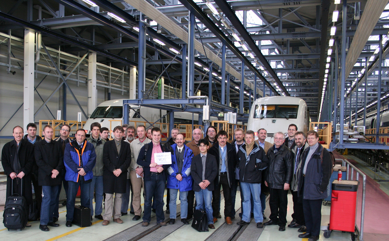2013 waren wir mit drei Vorträgen gedanklich in Kopenhagen (DK), erst die HGV-Strecke Kopenhagen-Ringsted, dann das Monitoring/Datenmanagement des U-Bahn-Projekts Cityringen Kopenhagen und das automatische Monitoringsystem am Beispiel Metro Kopenhagen. Die Gleisüberwachung der SBB-Strecke Zürich-Oerlikon war ebenso ein Thema wie die Auswirkungen für die Stadtbahn vom Bau des Großprojektes Stuttgart 21. Spannend war der Vortrag über die neuen Hauptbahnhöfe der ÖBB in Wien und in Salzburg, mit der gelungenen Architektur und den optimierten Betriebsabläufen. Der erfolgreiche Drohneneinsatz in der Vermessung und bei der DB AG wurden besprochen. Bei einer besonderen Exkursion waren wir zu Gast beim Fahrzeughersteller SIEMENS in Berlin-Treptow. Dort wurde uns das europäische Signalsystem ETCS mit einem Streckensimulator vorgestellt (Bild 8).