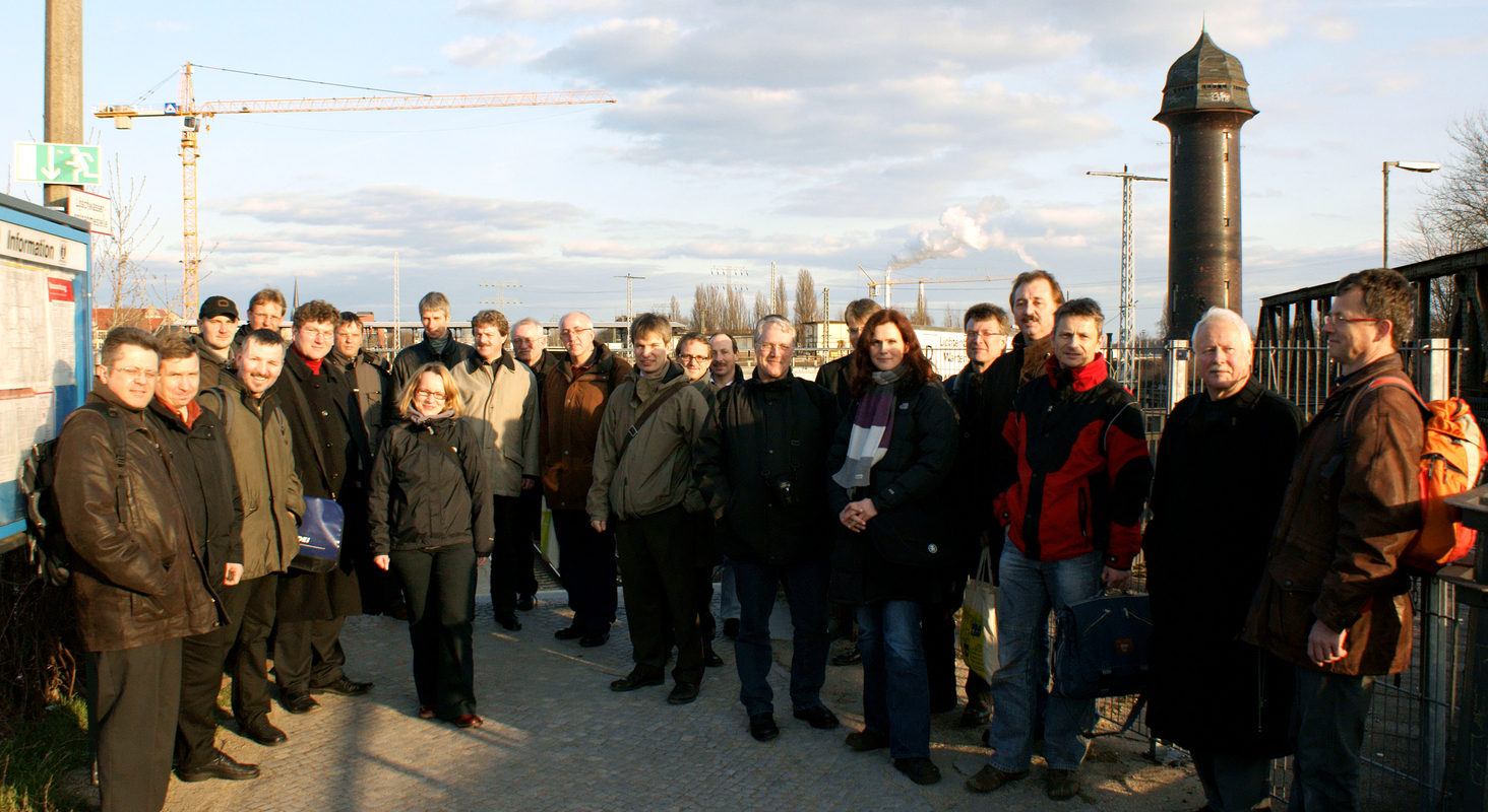 Die Baustelle OSTKREUZ sowie die Schienenanbindung des Berliner Flughafens International (BBI) waren in 2008 neben dem Infrastrukturdatenmanagement (IDMVU) bei den Nahverkehrsunternehmen wichtige Themen. In 2009 konnten wir die Infrastrukturprojekte des Staates Libyen verfolgen. Weichen und Geomonitoring am Ceneri Basistunnel (CH) waren neben den Messsystemen in den USA und dem Streckenatlas RailNav interessante Projekte. Die diesjährige Exkursion führte zur Baustelle OSTKREUZ (Bild 6).