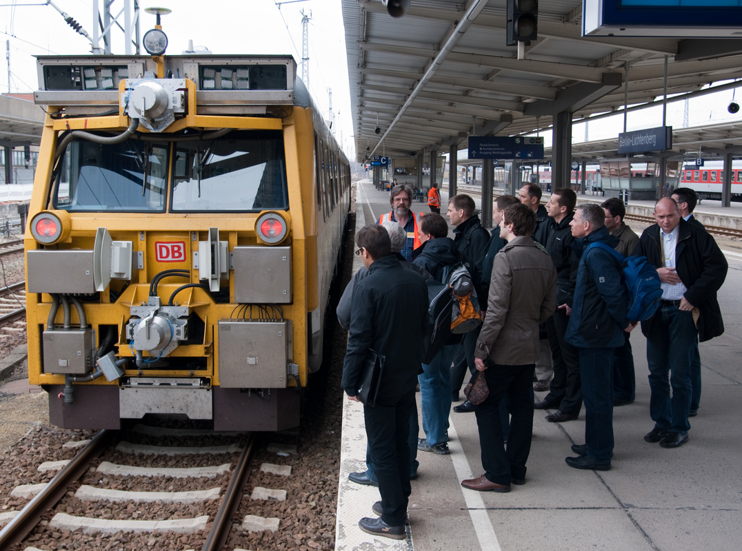 Eine besondere Exkursion stand diesmal an; der DB-Messzug LIMEZ III startete im Bahnhof Lichtenberg mit mehreren Messfahrten, die im Büro GI-Consult (Bornitzstraße 73-75) mit den Auswertungen dazu ihren sehr informativen Abschluss fand (Bild 7).