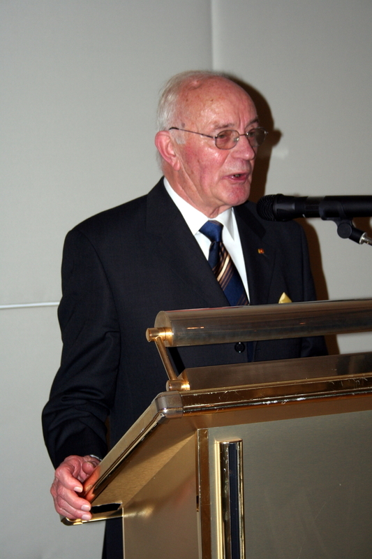 Ein weiterer Höhepunkt des Abends war die Verleihung des „Goldenen Lotes". Der Bezirksvorsitzende Wolfgang Kramer überreichte das „Goldene Lot" Wolfgang Beicken, in Anerkennung seiner langjährigen Verdienste um das Vermessungswesen und den VDV. Sichtlich überrascht empfing Herr Beicken die Auszeichnung und bedankte sich mit einer tollen Rede aus dem Stegreif. Dieser Preis soll auch in Zukunft an Personen oder Einrichtungen verliehen werden, die sich um das Vermessungswe sen in besonderer Weise verdient machen.