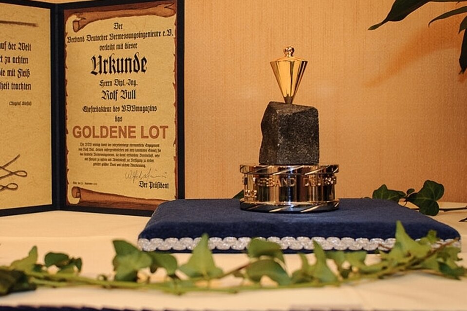 Der langjährige Chefredakteur des VDVmagazin Dipl.-Ing. Rolf Bull wurde vom Verband Deutscher Vermessungsingenieure (VDV) e.V. am 28. September in Köln mit dem GOLDENEN LOT ausgezeichnet. Der Verband ehrte damit seine herausragenden Verdienste um das deutsche Vermessungswesen.