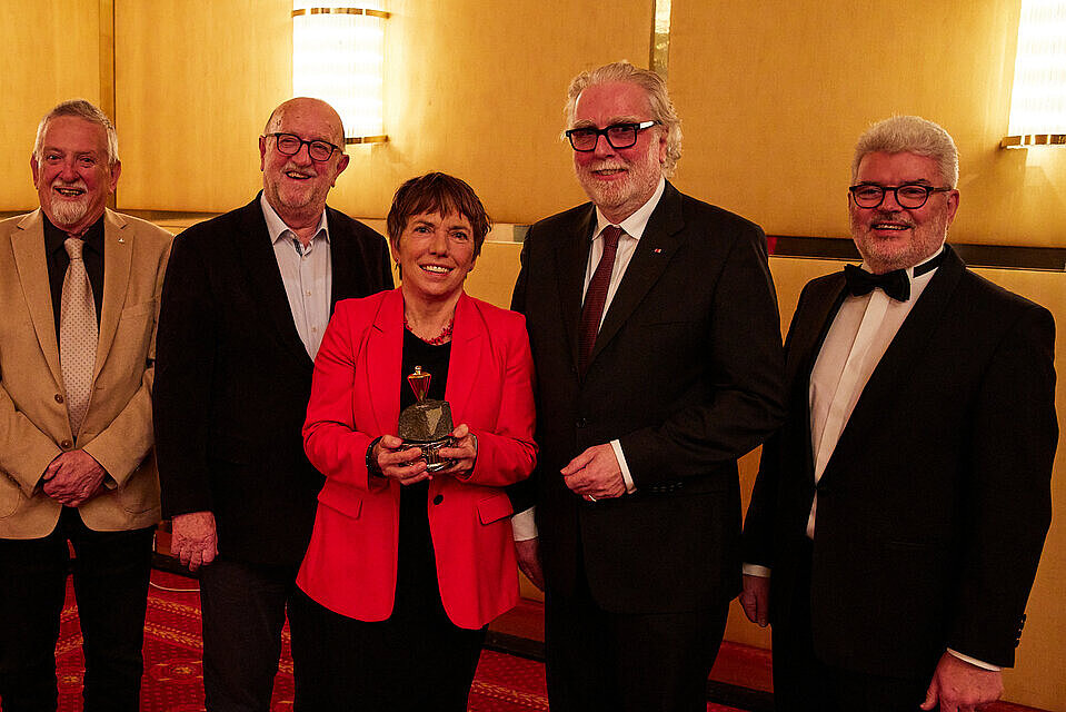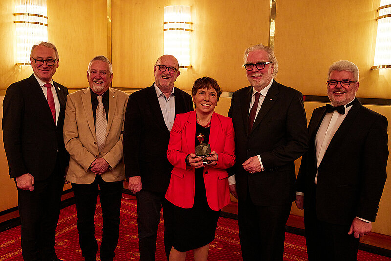 An der Galaveranstaltung im Kristallsaal der KoelnMesse nahmen auch ehemalige Preisträger des GOLDENEN LOTES teil und berichteten im Laufe des Abends über ihre aktuellen Aktivitäten: Dipl.-Ing. Wilfried Grunau (2003), Dr. Michael McKay (2004), Dipl.-Ing. Rolf Bull (2012), Prof. Dr. Klaus Grewe (2014) und Prof. Dr. Manfred Weisensee (2019).