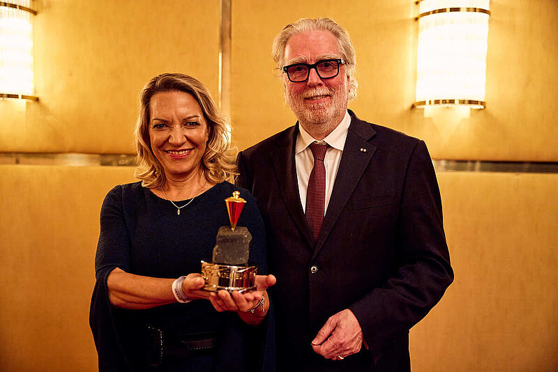 Die Professorin Dr. Antje Boetius ist am 02. Dezember 2022 in Köln mit dem GOLDENEN LOT ausgezeichnet worden. Der Verband Deutscher Vermessungsingenieure (VDV) würdigt mit dieser Auszeichnung ihr außergewöhnliches Engagement im Bereich der Klimaforschung und ihre wegweisenden Untersuchungen zu den Auswirkungen des Klimawandels auf den Arktischen Ozean und dessen Biodiversität. Prof. Dr. Boetius ist Direktorin des Alfred-Wegener-Instituts, Helmholtz-Zentrum für Polar- und Meeresforschung (AWI) in Bremerhaven. Die Laudatio hielt der Vorjahrespreisträger und Präsident des Club of Rome Deutschland, Prof. Dr. Mojib Latif.